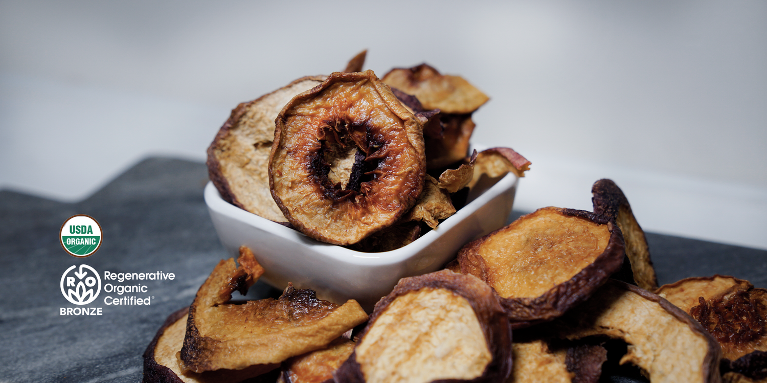 Our estate orchards are proudly Regenerative Organic Certified, meaning we are part of a healthy food system that respects land and animals and empowers people. This certification highlights our commitment to soil health, the health of the full farm ecosystem, and the health of our surrounding community.