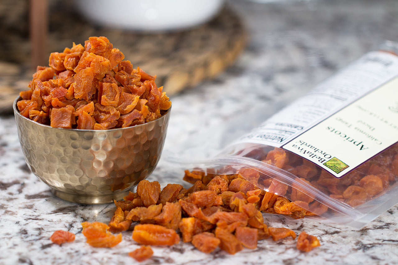 For baking and cooking: Diced Dried California Tangy Apricots from Bella Viva Orchards - our dried tangy apricots are evenly diced for you convenience - perfect for those who love to bake and cook. The Royal Blenheim ruled the dried apricot empire for years but the hand-cut and sun-dried Westley dried apricot has taken the reign at Bella Viva . Our Westley apricots plump, sweet flavor makes for the best drying - we think you'll agree. As always, these dried, full-flavored apricots are rich with vitamin A, and a tasty source of iron and calcium.