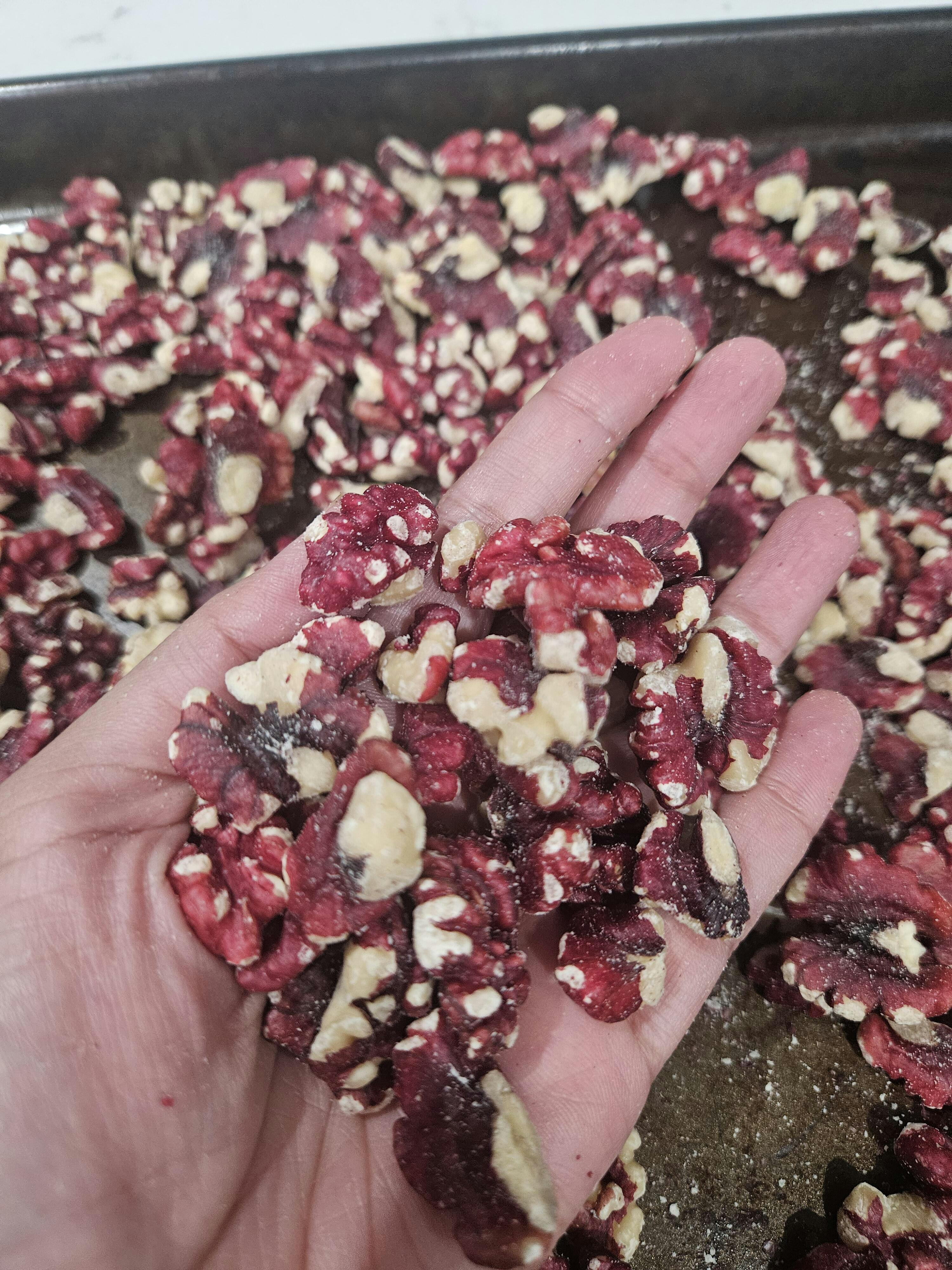 It’s the first time I tried red walnuts. I prefer the brown walnuts creamier richer flavor.